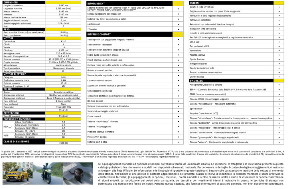 Le componenti del sistema ibrido Suzuki, l’alternatore e la batteria al litio sono garantite 5 anni o 100.000km a partire dalla data di immatricolazione. La vettura è garantita 3 anni o 100.000 km e 12 anni per la corrosione passante.